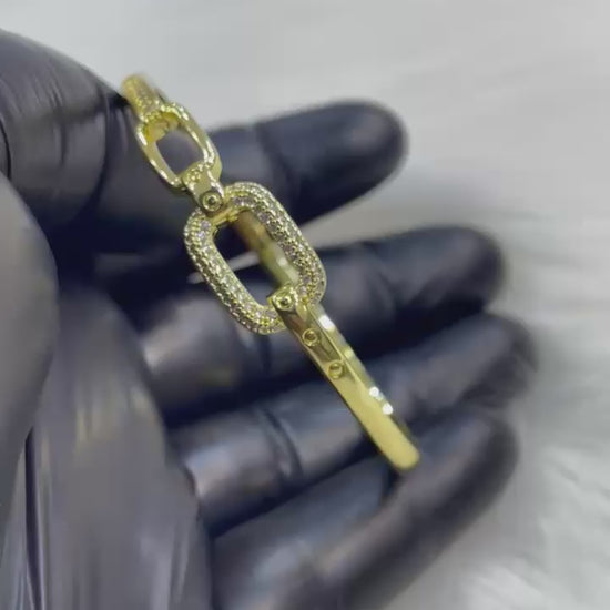 Contemporary Link Design: Features a centerpiece of interlocking rectangular links, with the central link fully encrusted in brilliant micro-pavé stones.