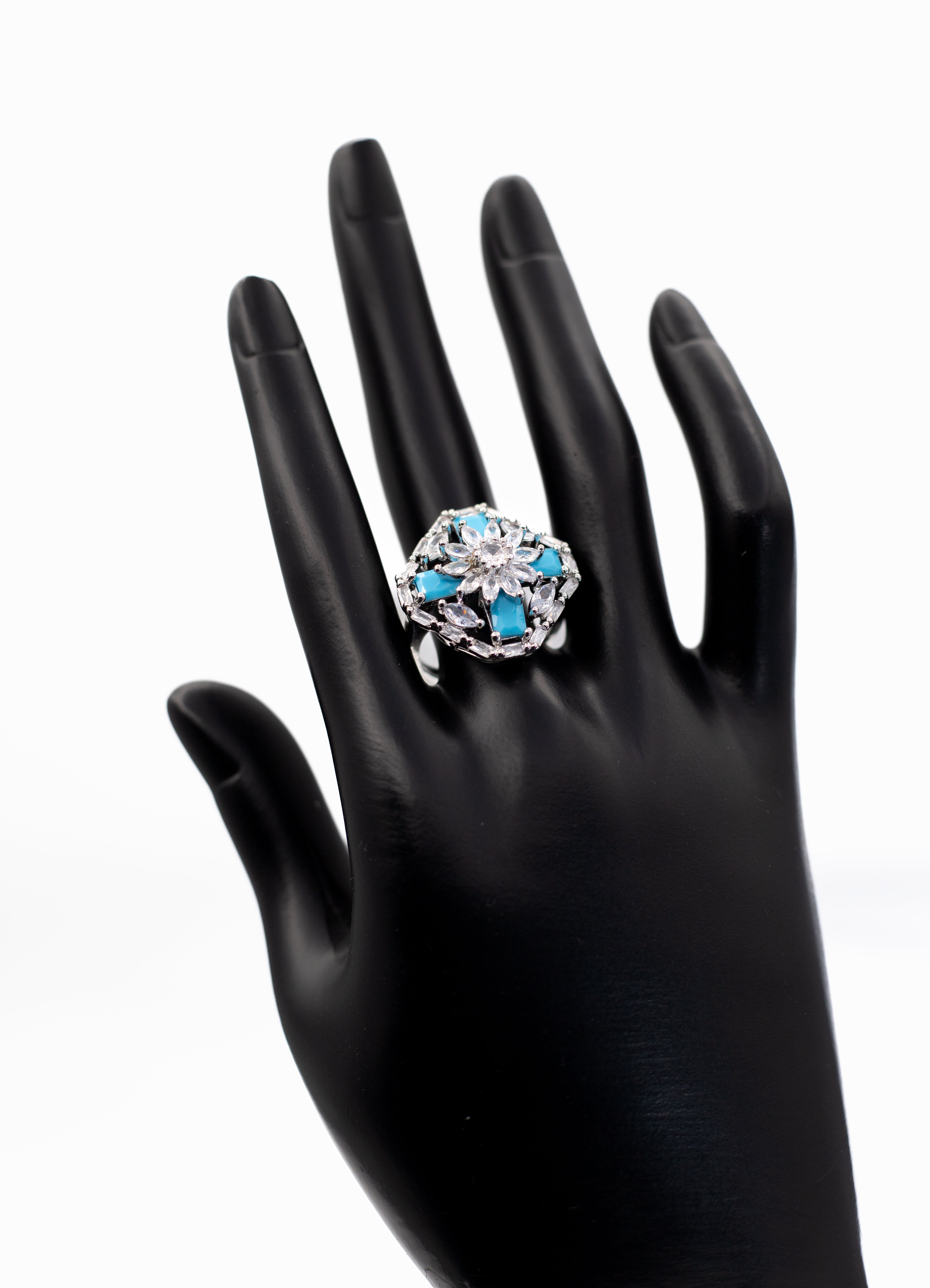 Stone Type: Premium Cubic Zirconia and Turquoise-colored accents.