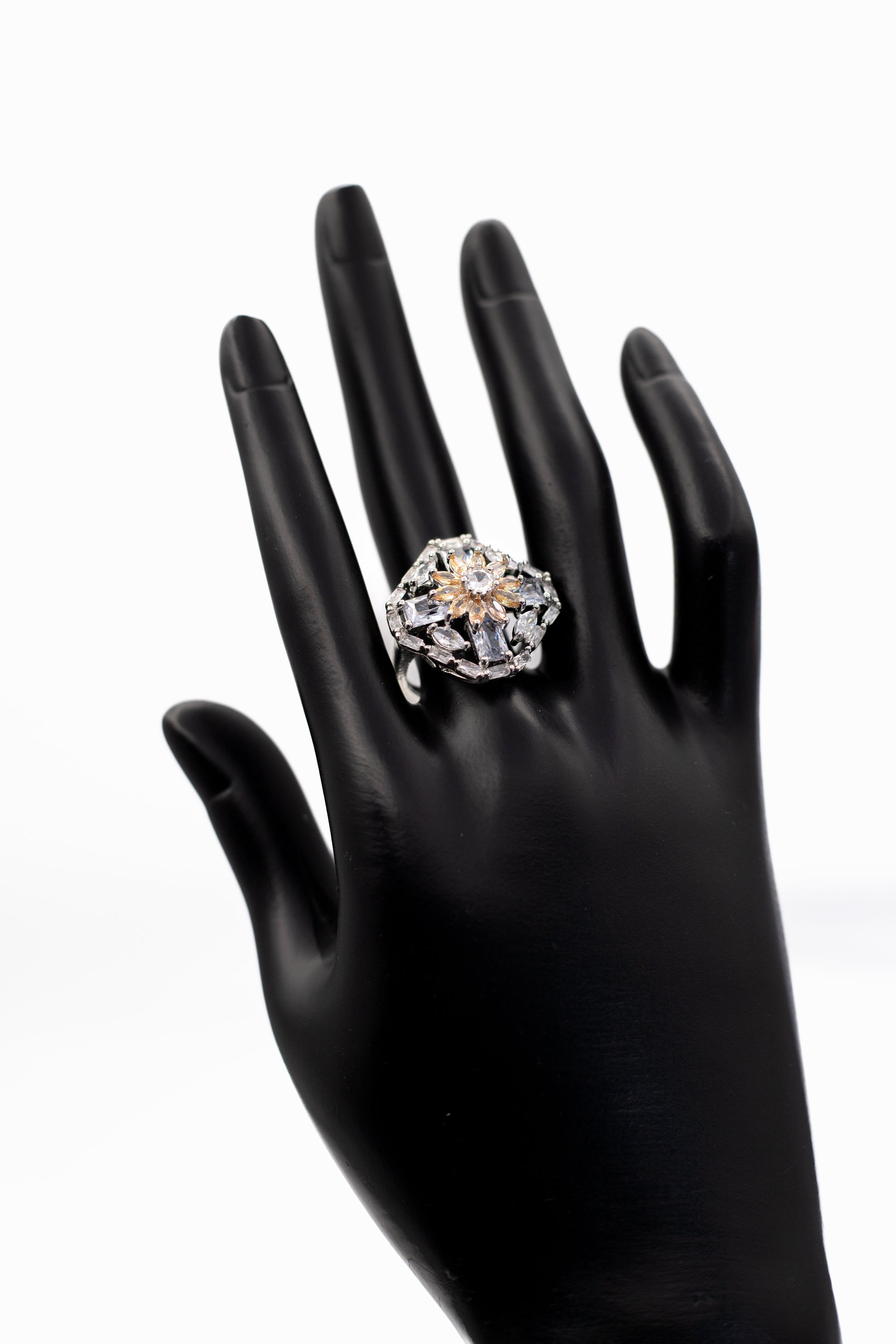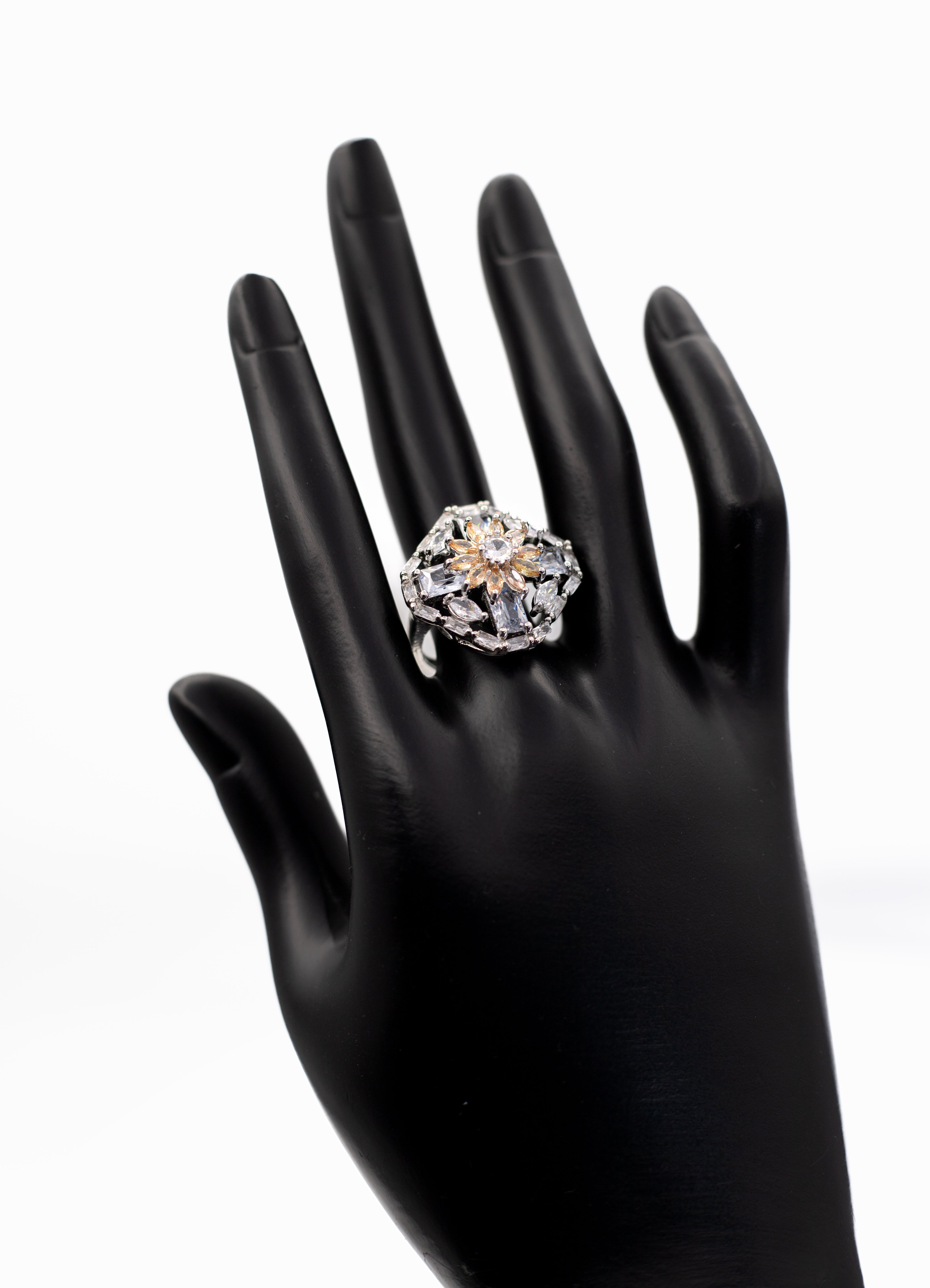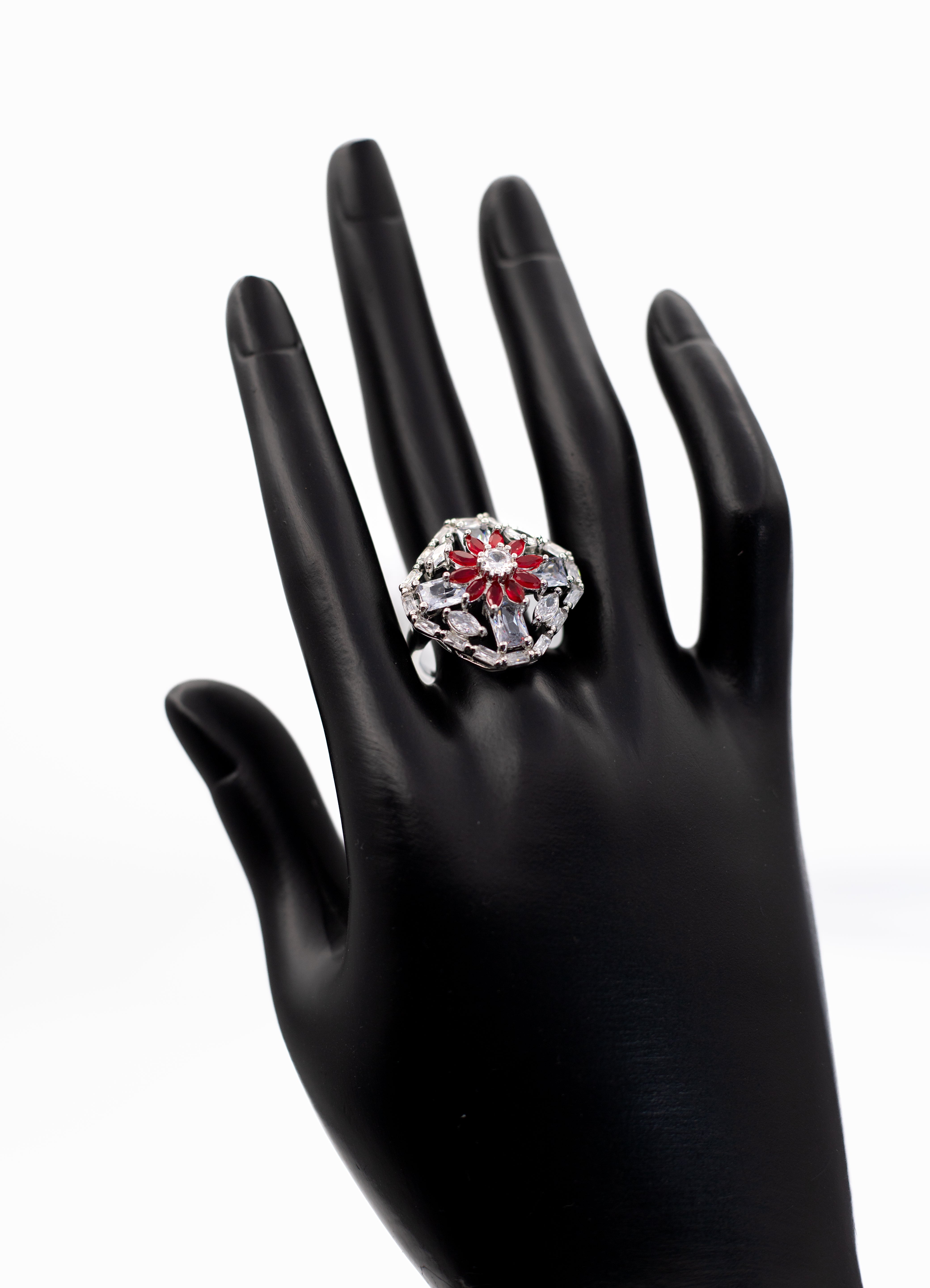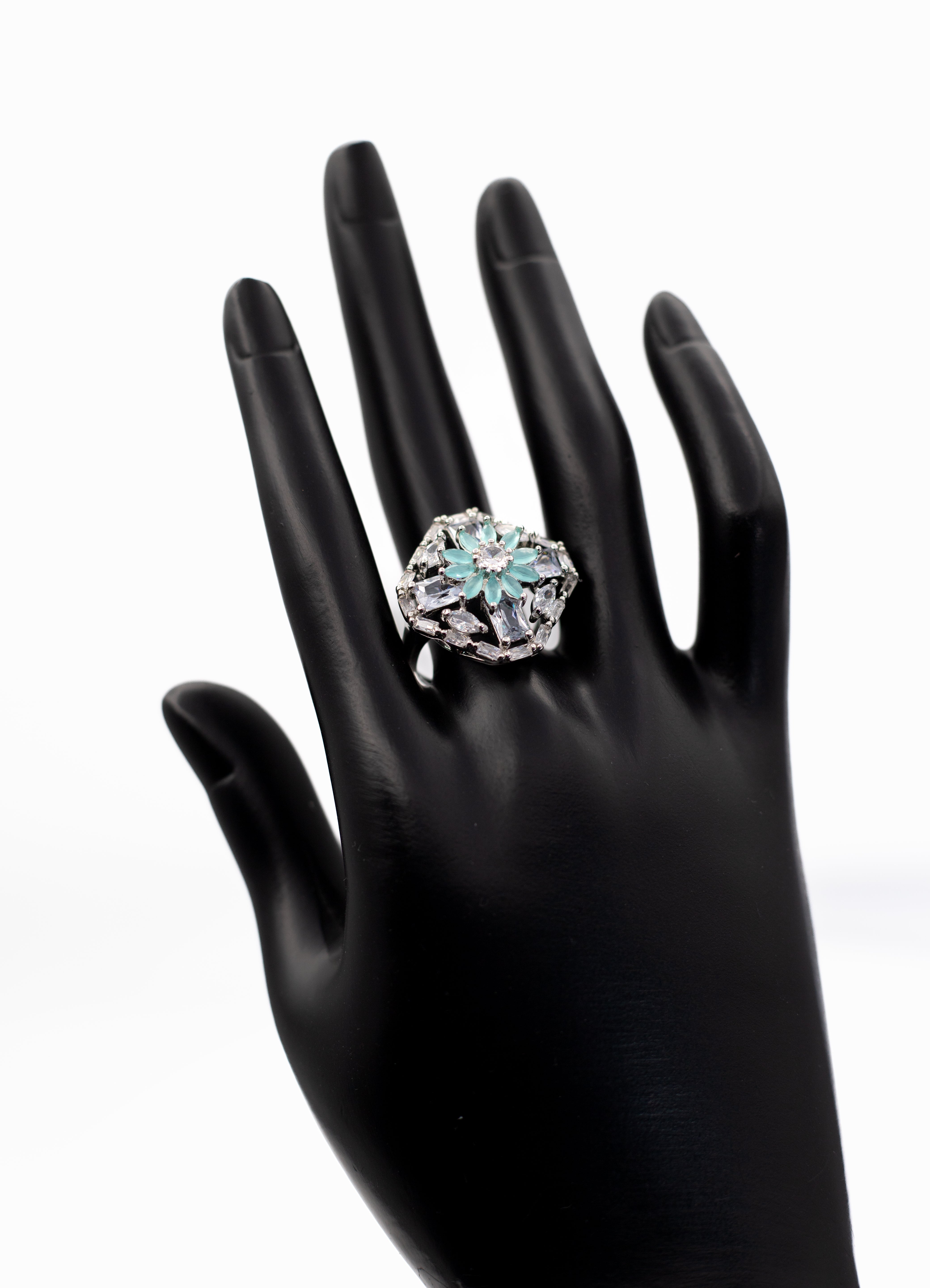 Cool Silver Elegance: Set in a polished silver-toned band, this ring offers a crisp, clean look that complements both evening gowns and refined daytime attire.