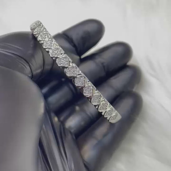 Celebrate love and sophisticated craftsmanship with our Eternal Hearts Pave-Set Bangle. This exquisite piece features a continuous row of delicately sculpted heart-shaped links, each meticulously encrusted with brilliant-cut pavé stones. Designed for the modern woman who appreciates classic romance, this bangle offers a seamless blend of high-shine polish and breathtaking sparkle.