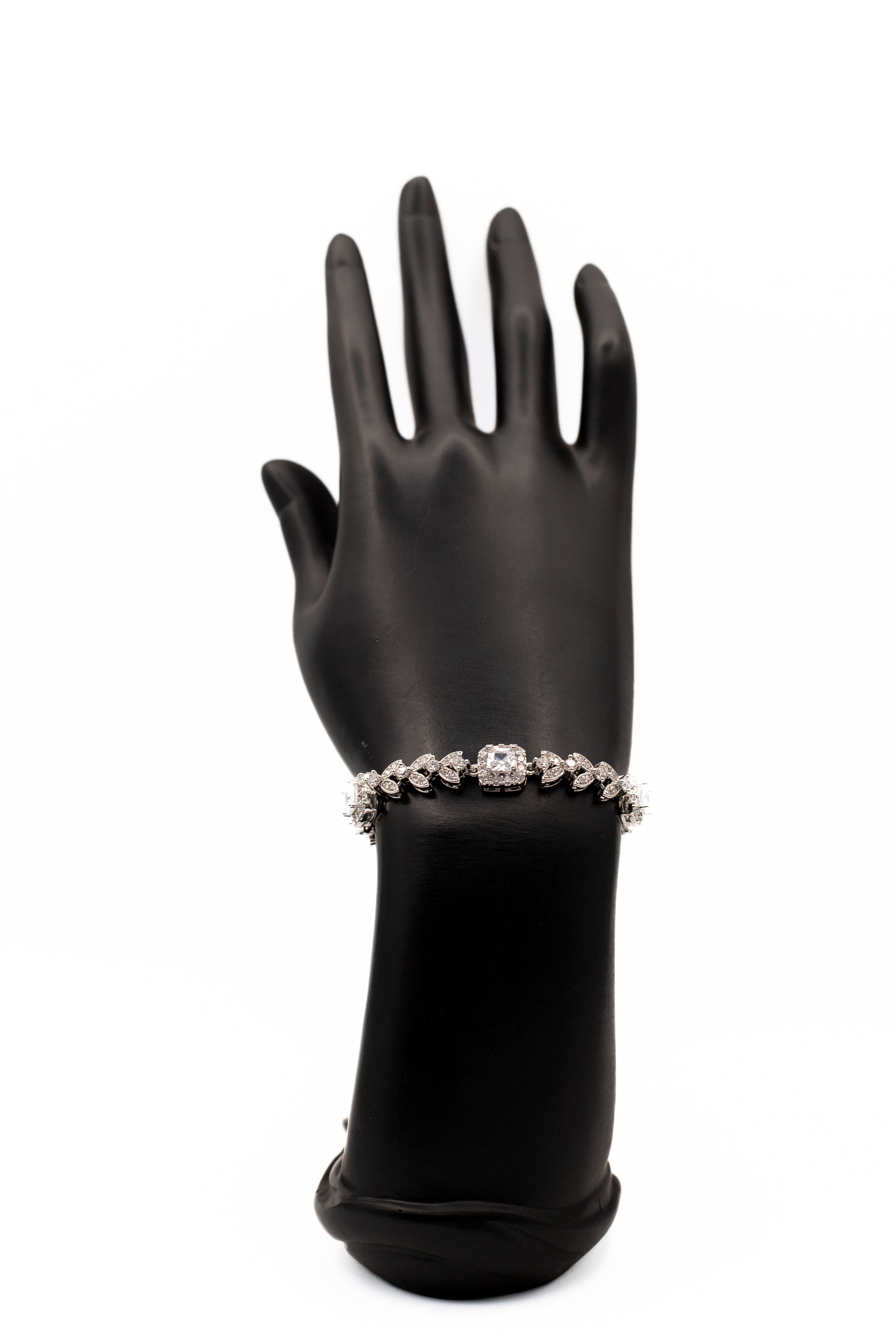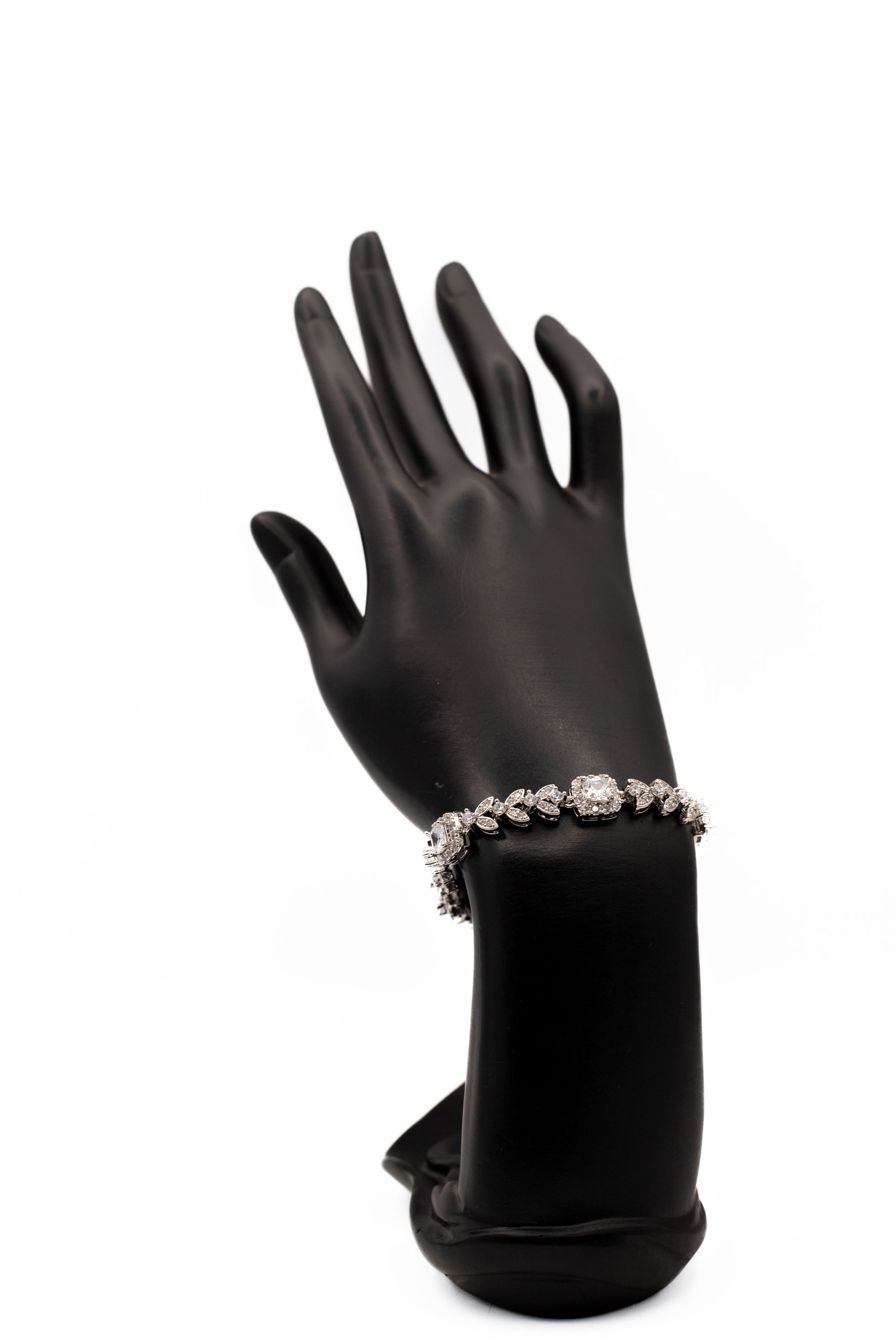 Define opulent luxury and intricate beauty with our Luxury Silver Crystal Cluster Bracelet. This exquisite piece features an elaborate design combining large, brilliant round crystals with delicate leaf-shaped clusters of smaller stones. The silver-toned setting enhances the sparkle, creating a stunning, diamond-like effect. This premium statement accessory is perfect for bridal jewelry, formal occasions, or anniversary gifting, embodying timeless elegance and Korean-inspired glamour.