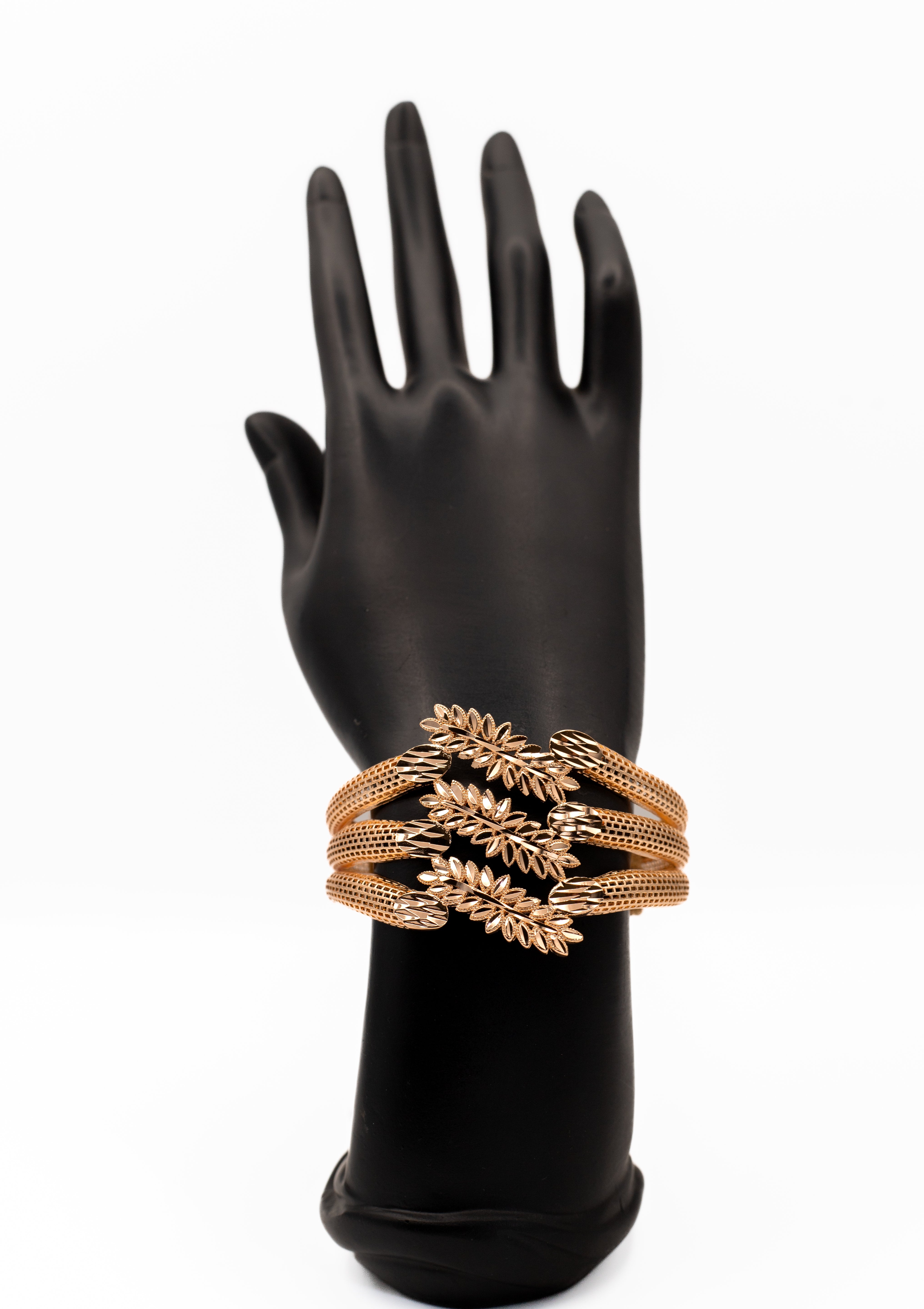 Make an unforgettable, glamorous statement with our Luxury Golden Laurel Leaf Wide Cuff Bracelet. This stunning cuff is defined by its textural design, featuring multiple intertwined woven golden bands that anchor a prominent, beautifully detailed laurel leaf centerpiece. The polished gold finish highlights the contrast between the mesh texture and the smooth, elegant foliage. This premium, bold cuff is perfect for formal events, weddings, or making a high-fashion statement inspired by Korean glamour. The wide design ensures it stands out, embodying strength and sophistication.