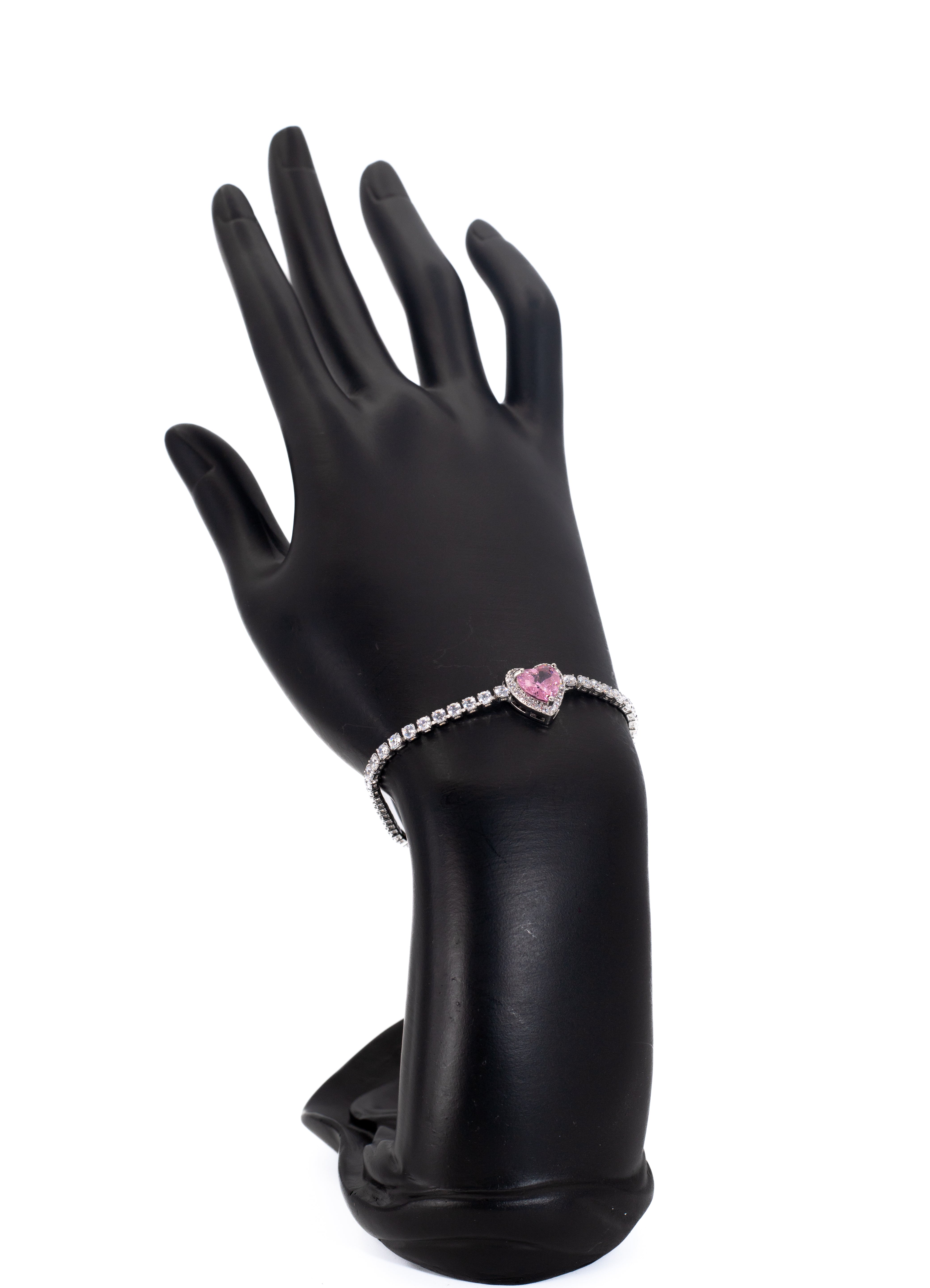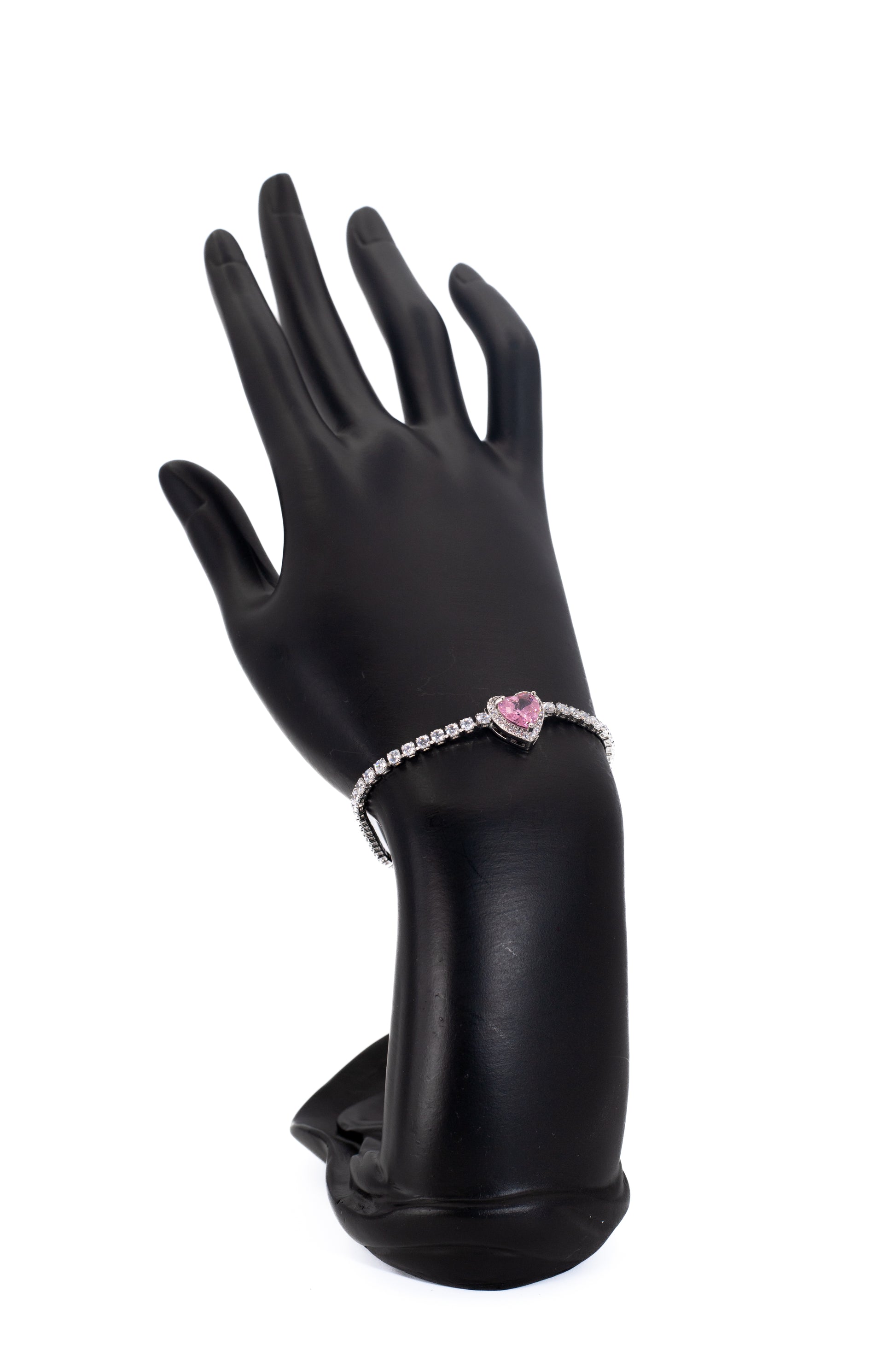 Express elegance and affection with this Golden Heart Bracelet featuring a delicate pink crystal centerpiece.