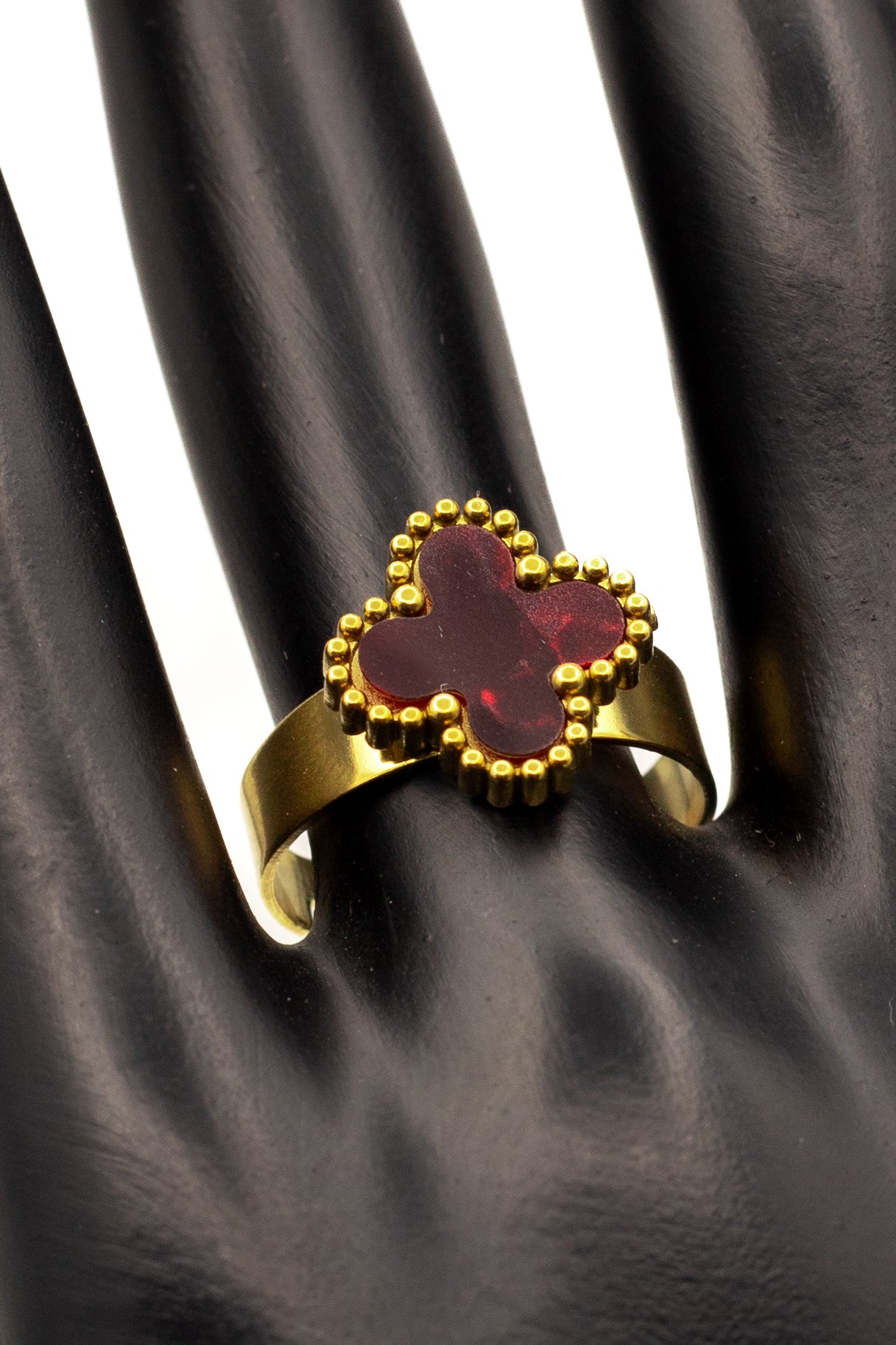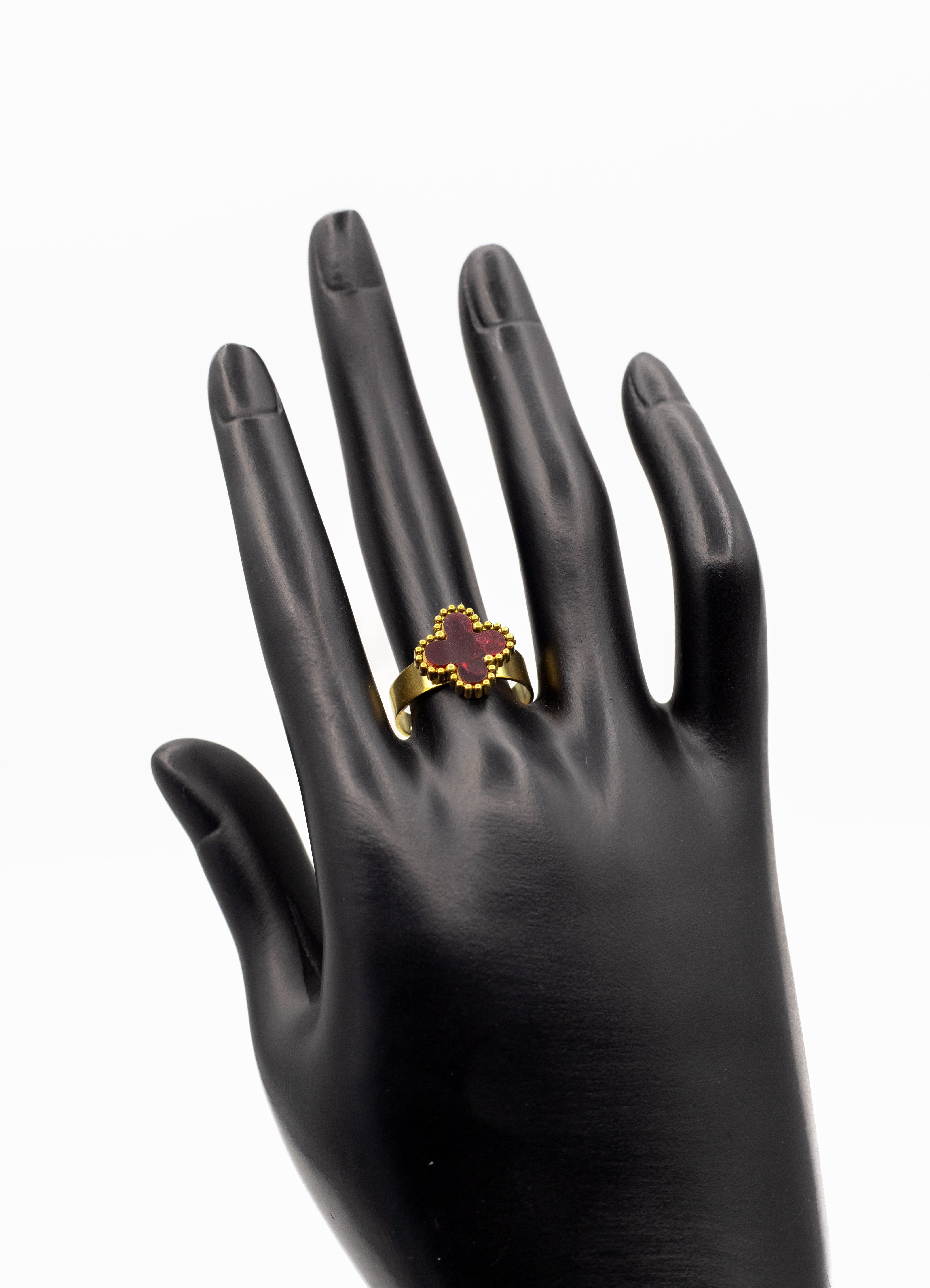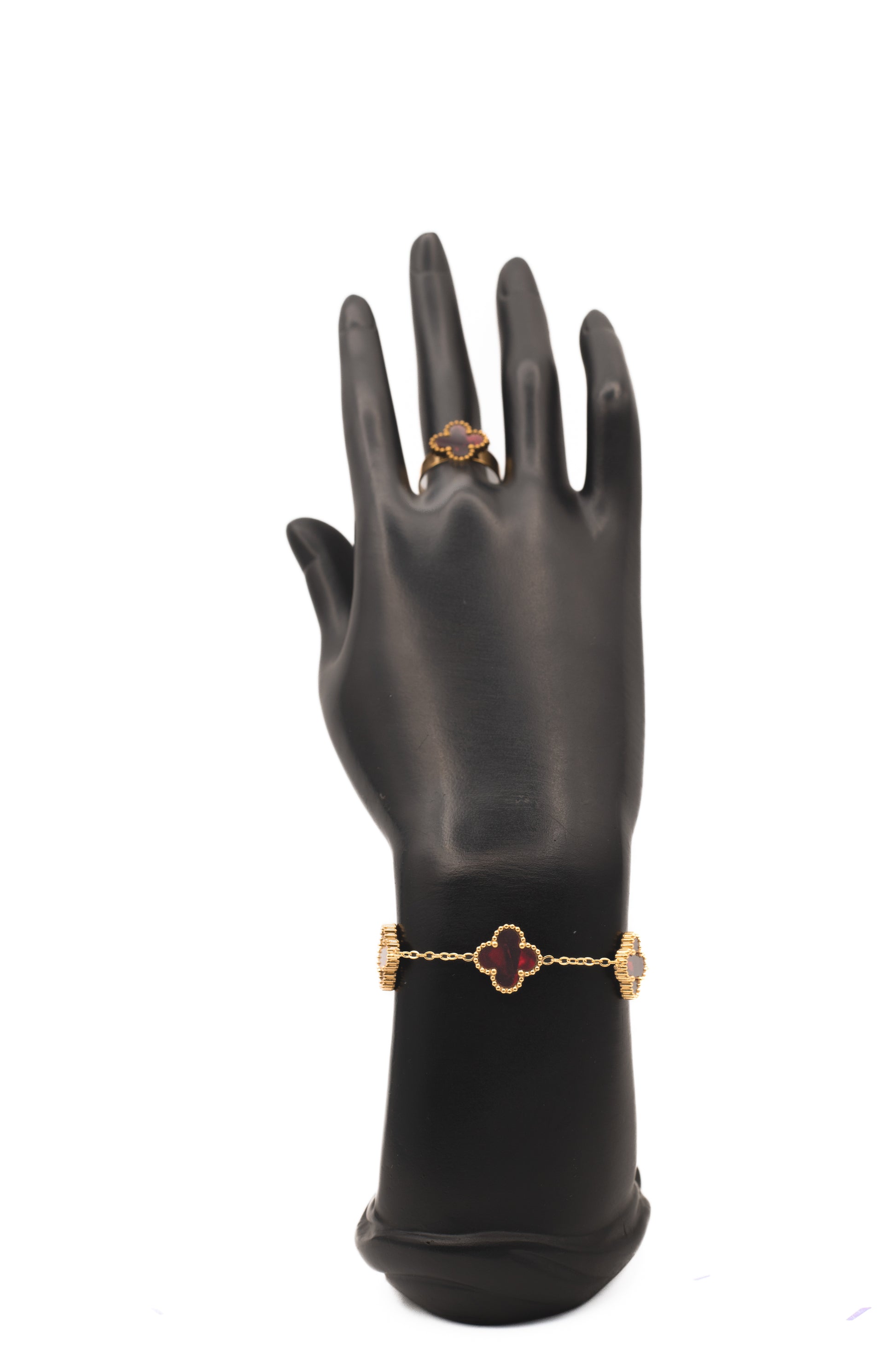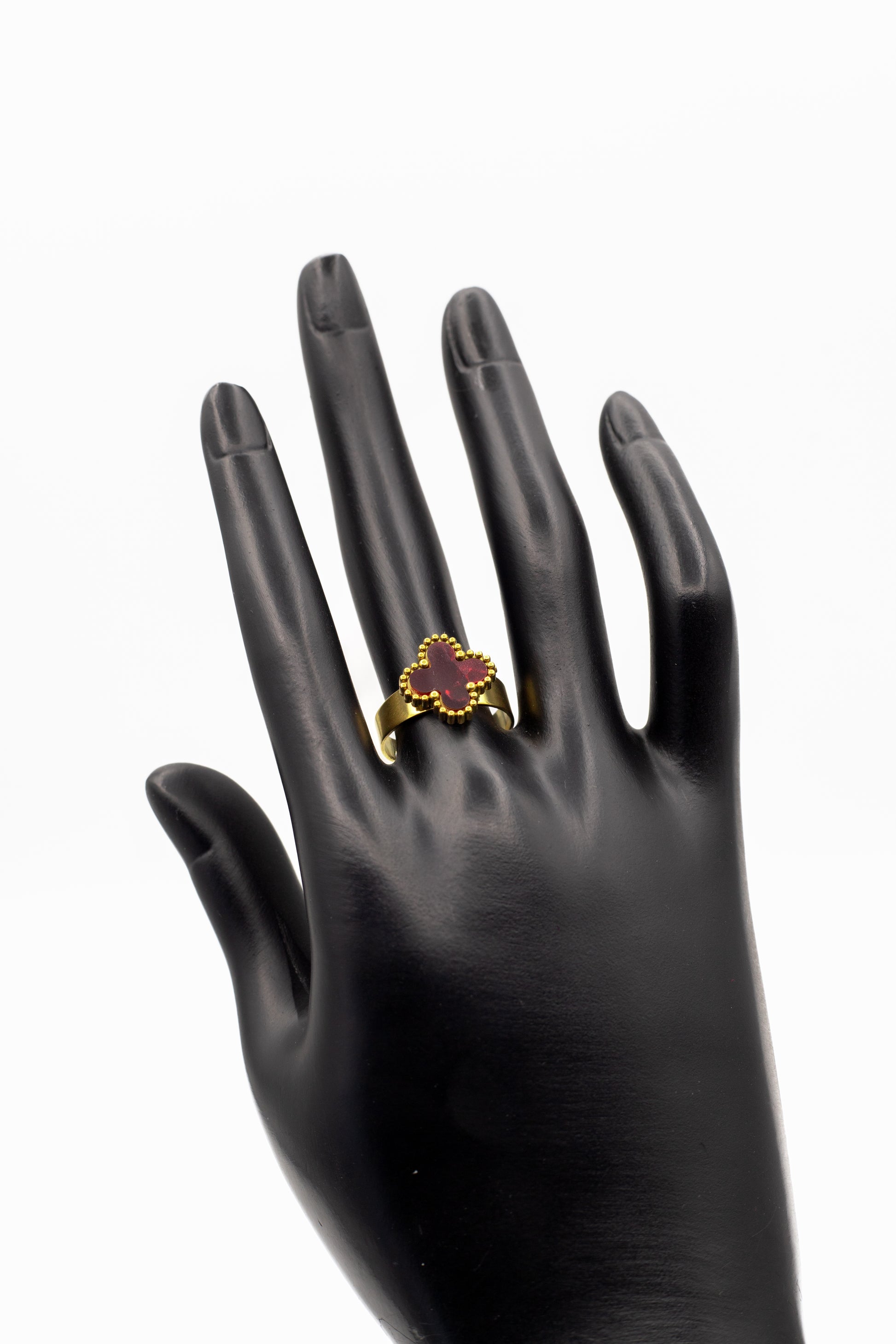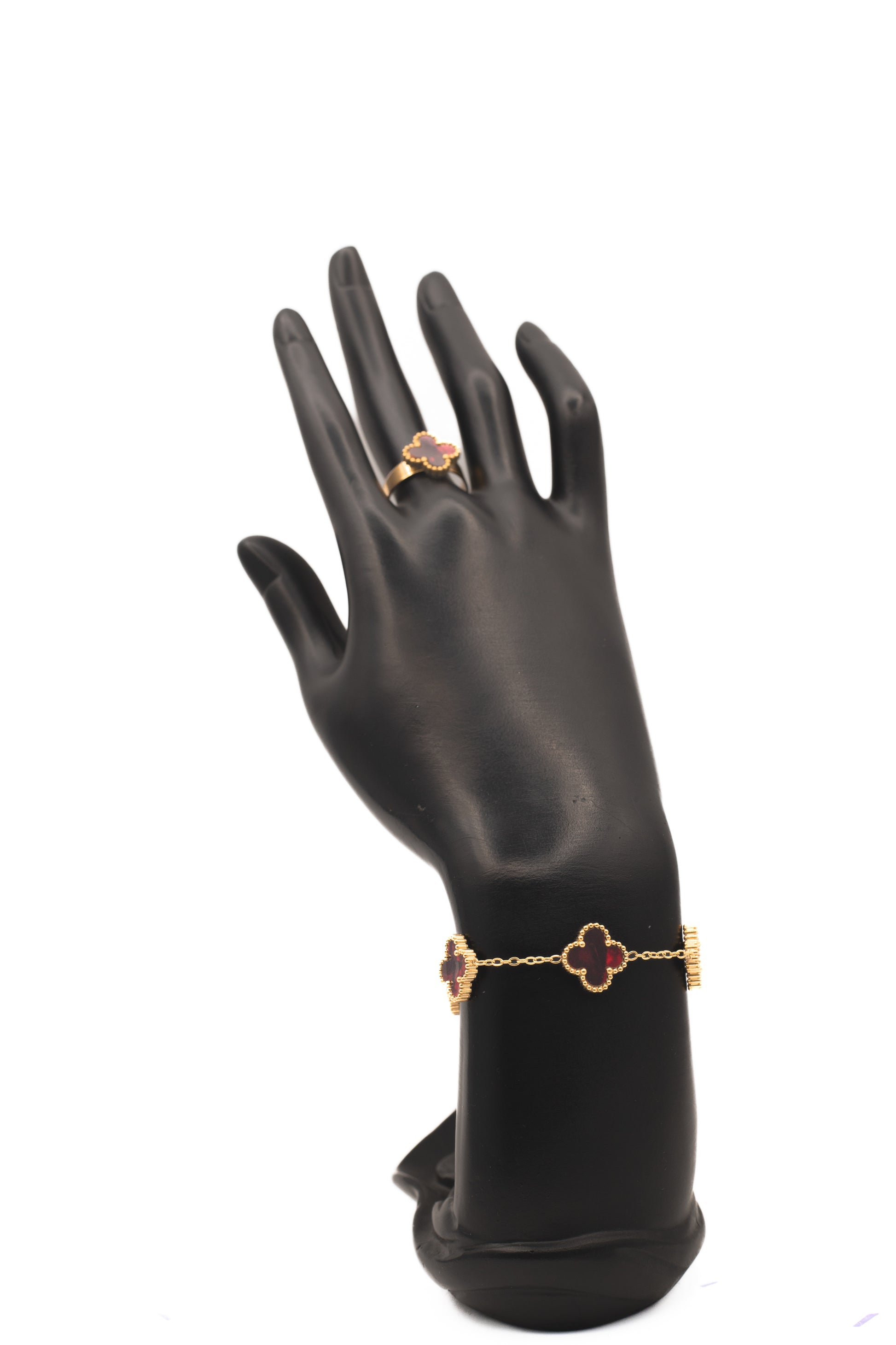 Product Description: Celebrate luck and timeless elegance with the Lucky Clover Motif Collection. This iconic design features the four-leaf clover symbol, widely cherished as a token of good fortune. Each piece is crafted in a radiant gold tone with a delicate beaded rim that frames the vibrant center stone. Choose from a stunning array of finishes to match your style .Red (Carnelian Style): Bold and romantic.