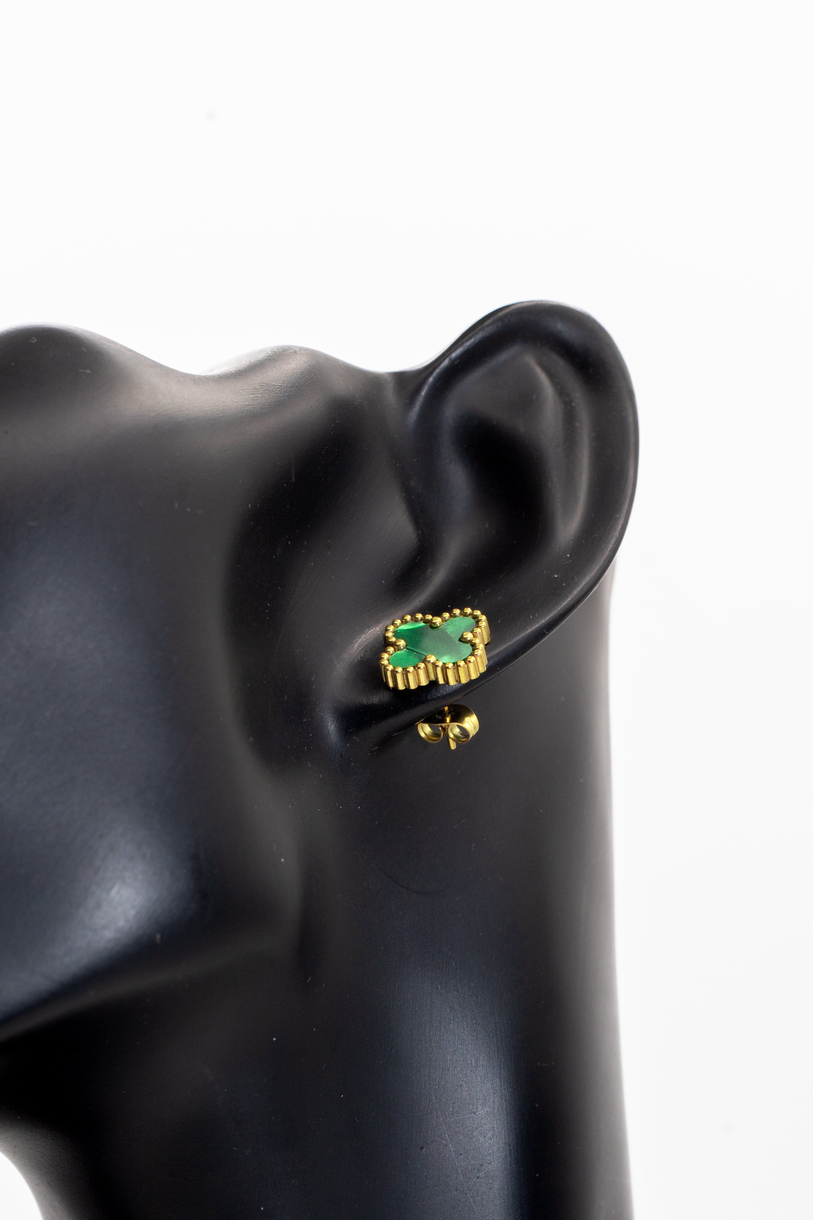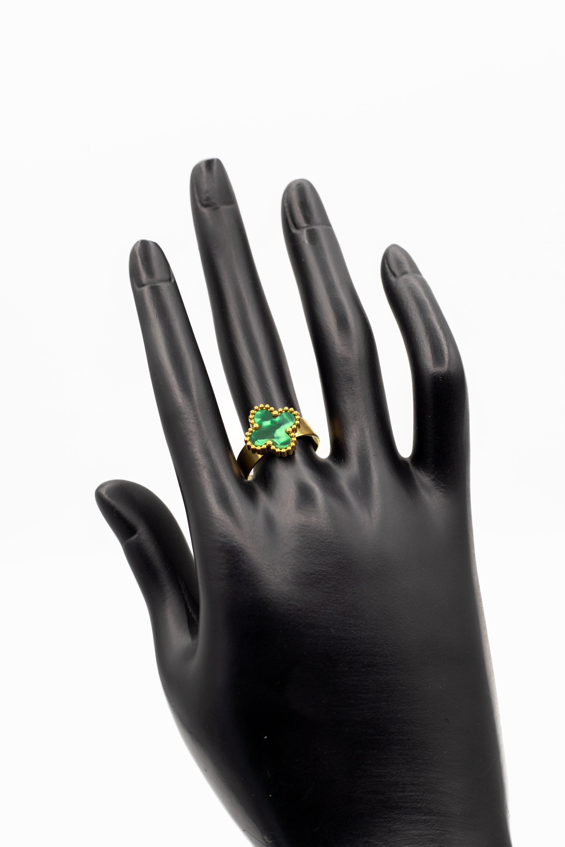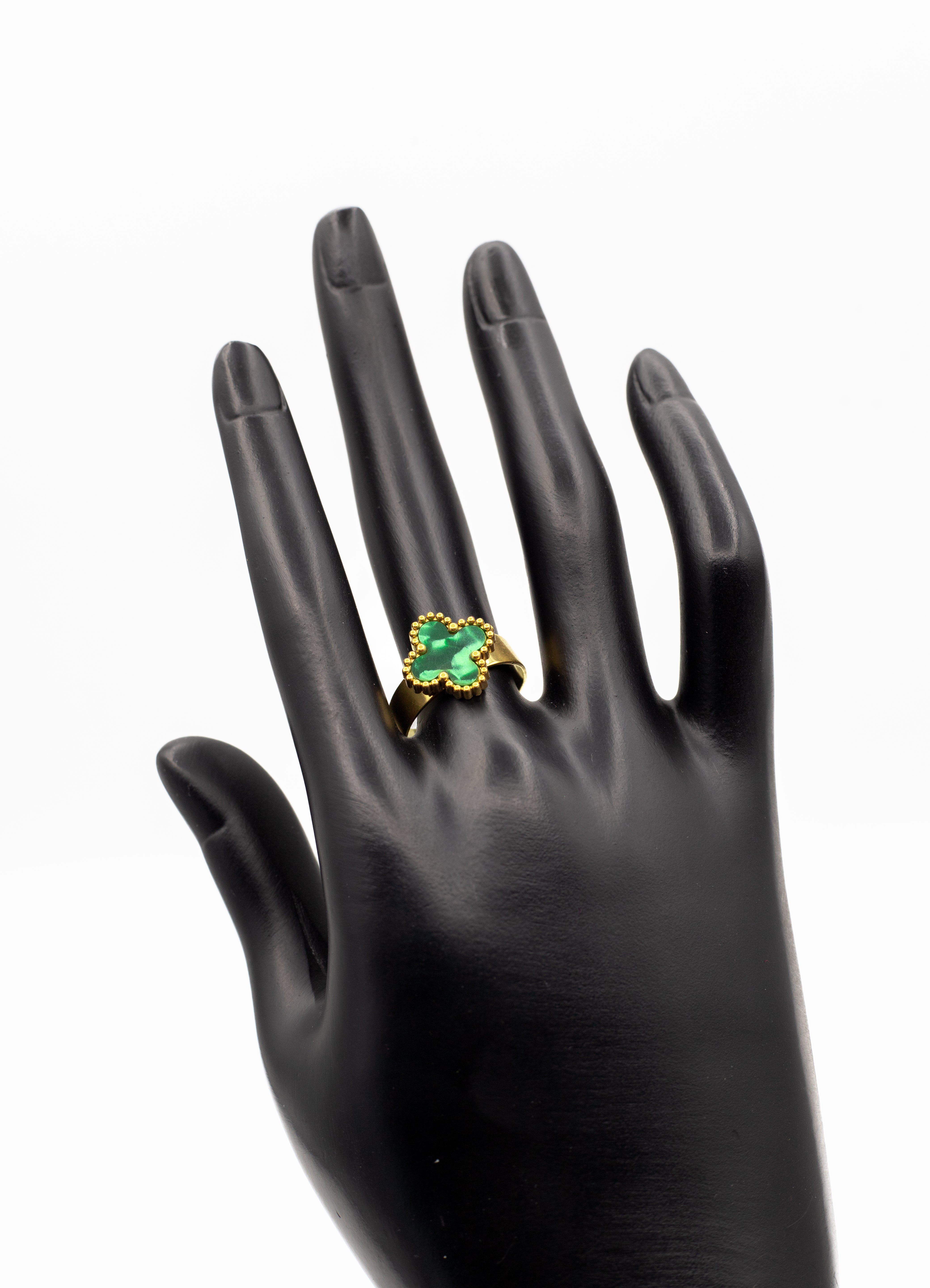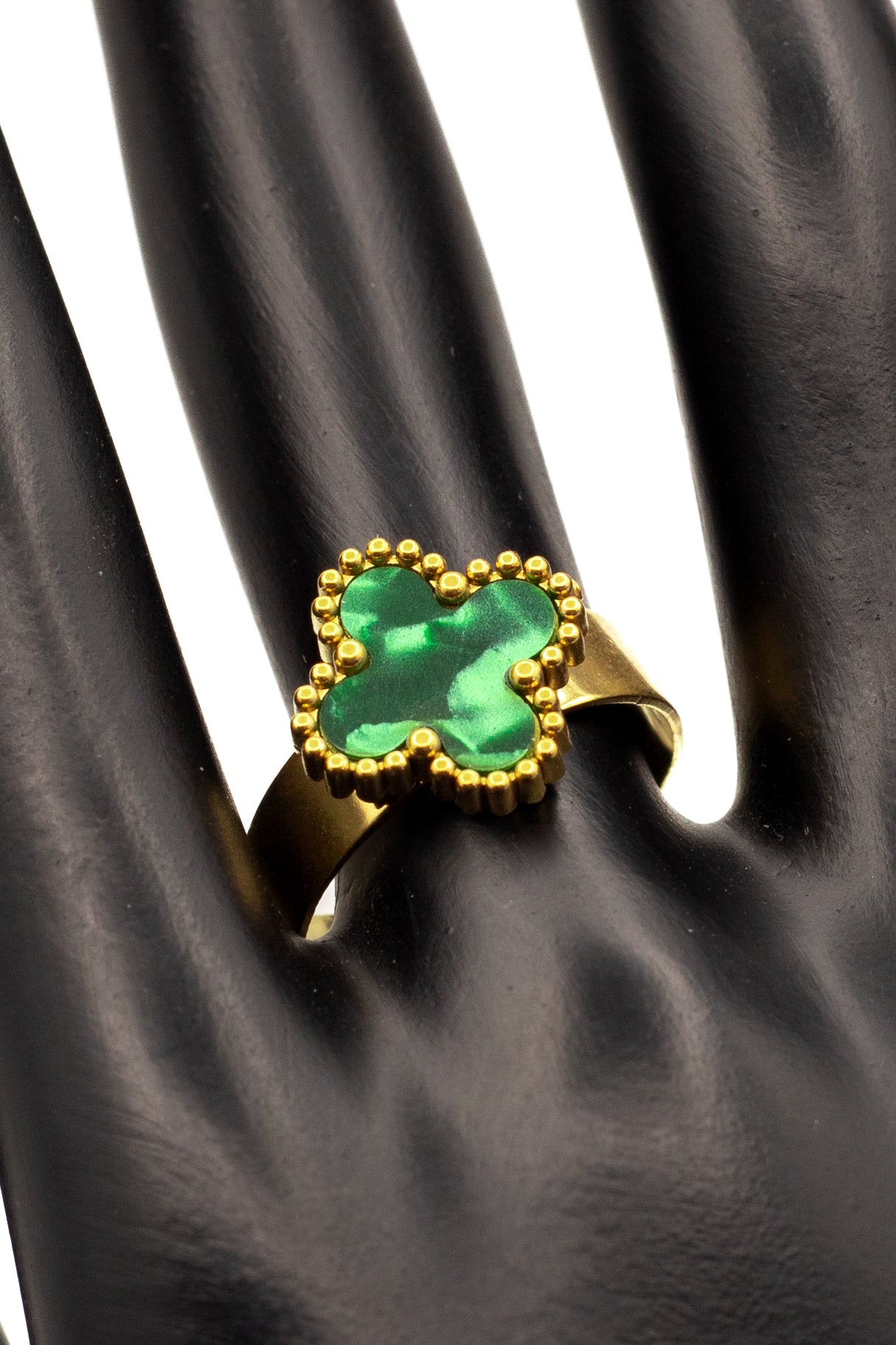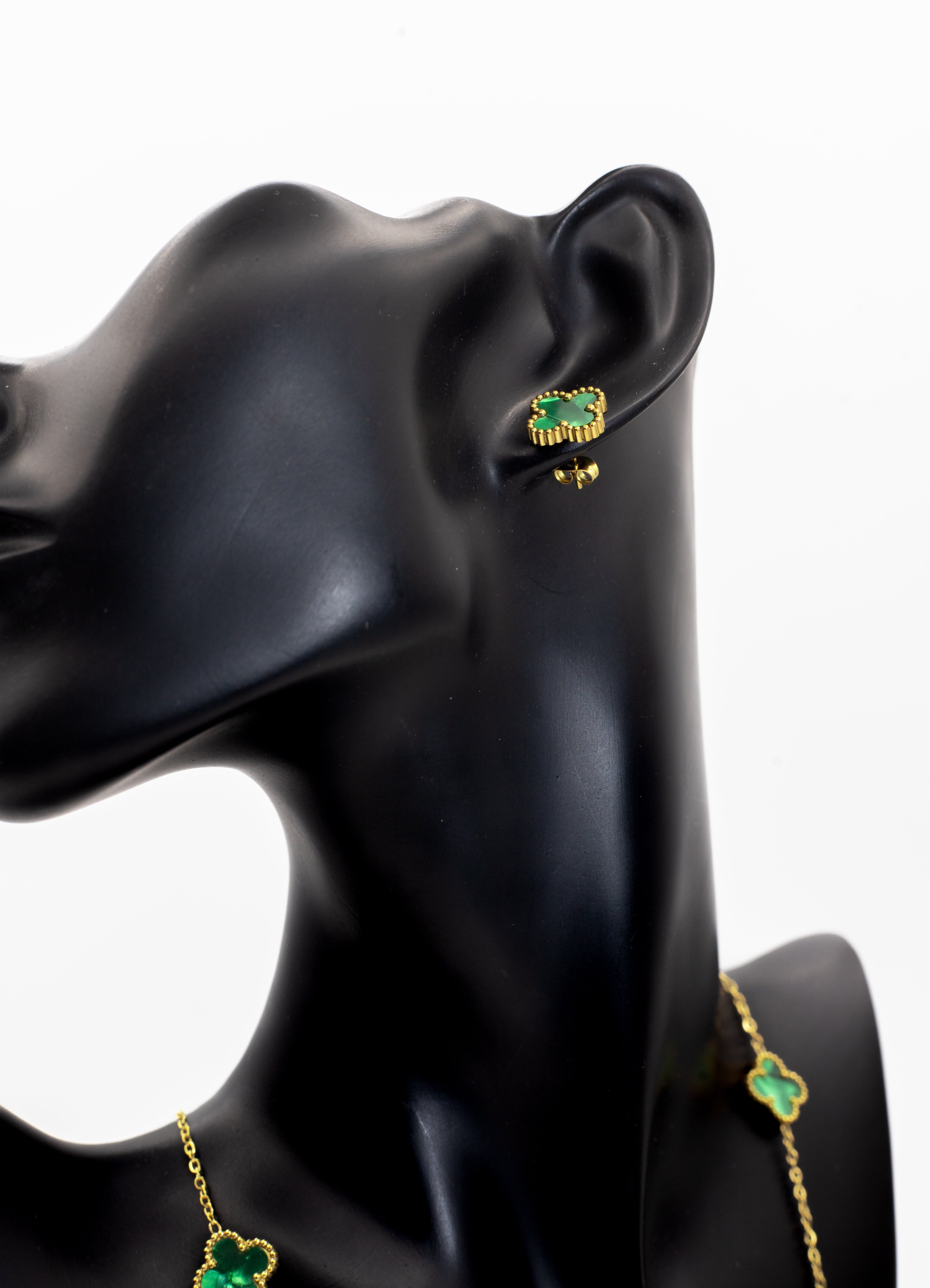 Product Description: Celebrate luck and luxury with the Lucky Clover Motif Collection. This extensive range features the timeless four-leaf clover symbol, crafted to perfection in gleaming gold tones. Choose from vibrant Green Malachite .Each piece is rimmed with delicate golden beading, adding a vintage-inspired texture to the modern design. Whether you choose the delicate station necklace, the matching bracelet, the statement ring, or the stud earrings, this collection offers endless possibilities for building a coordinated, sophisticated look.