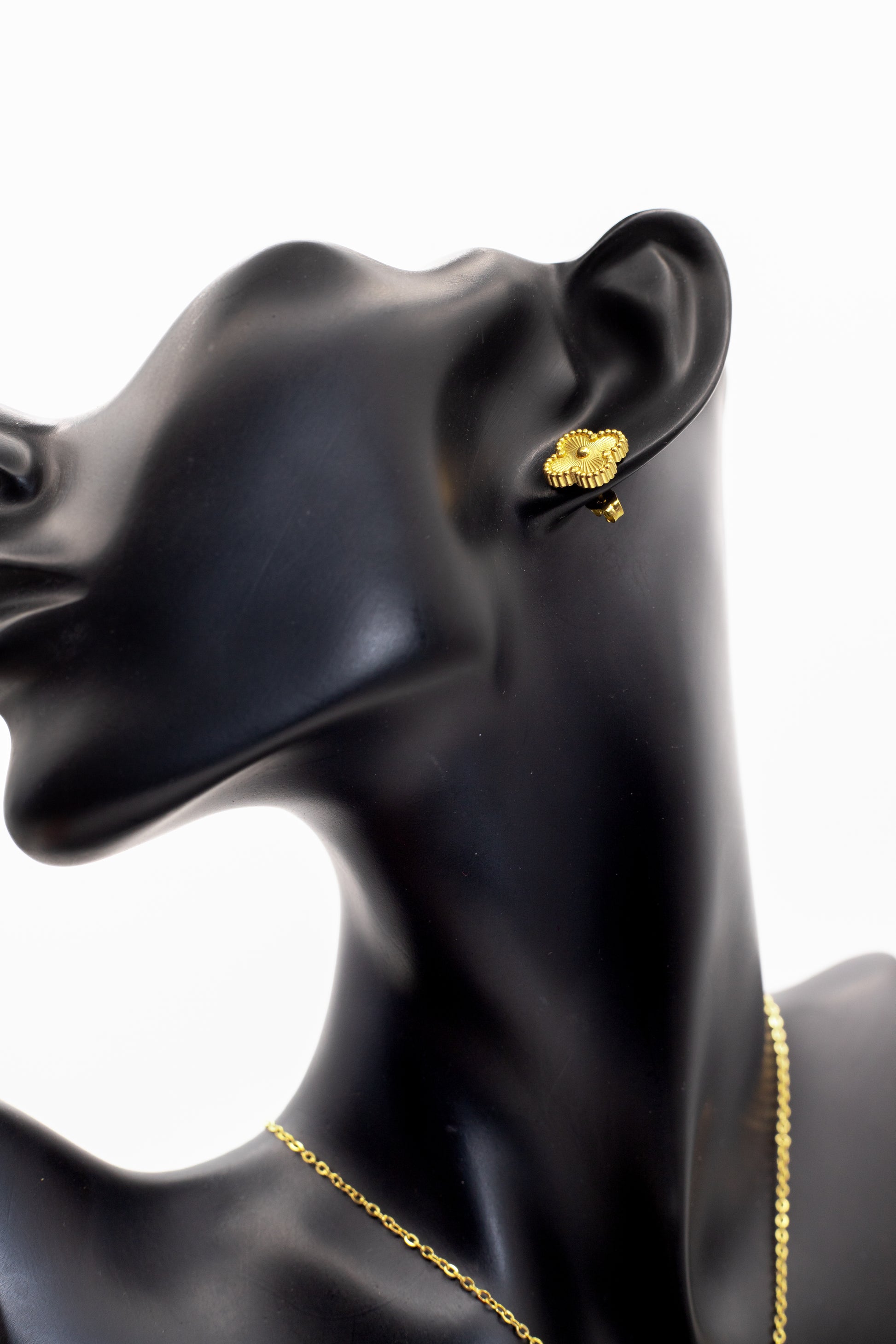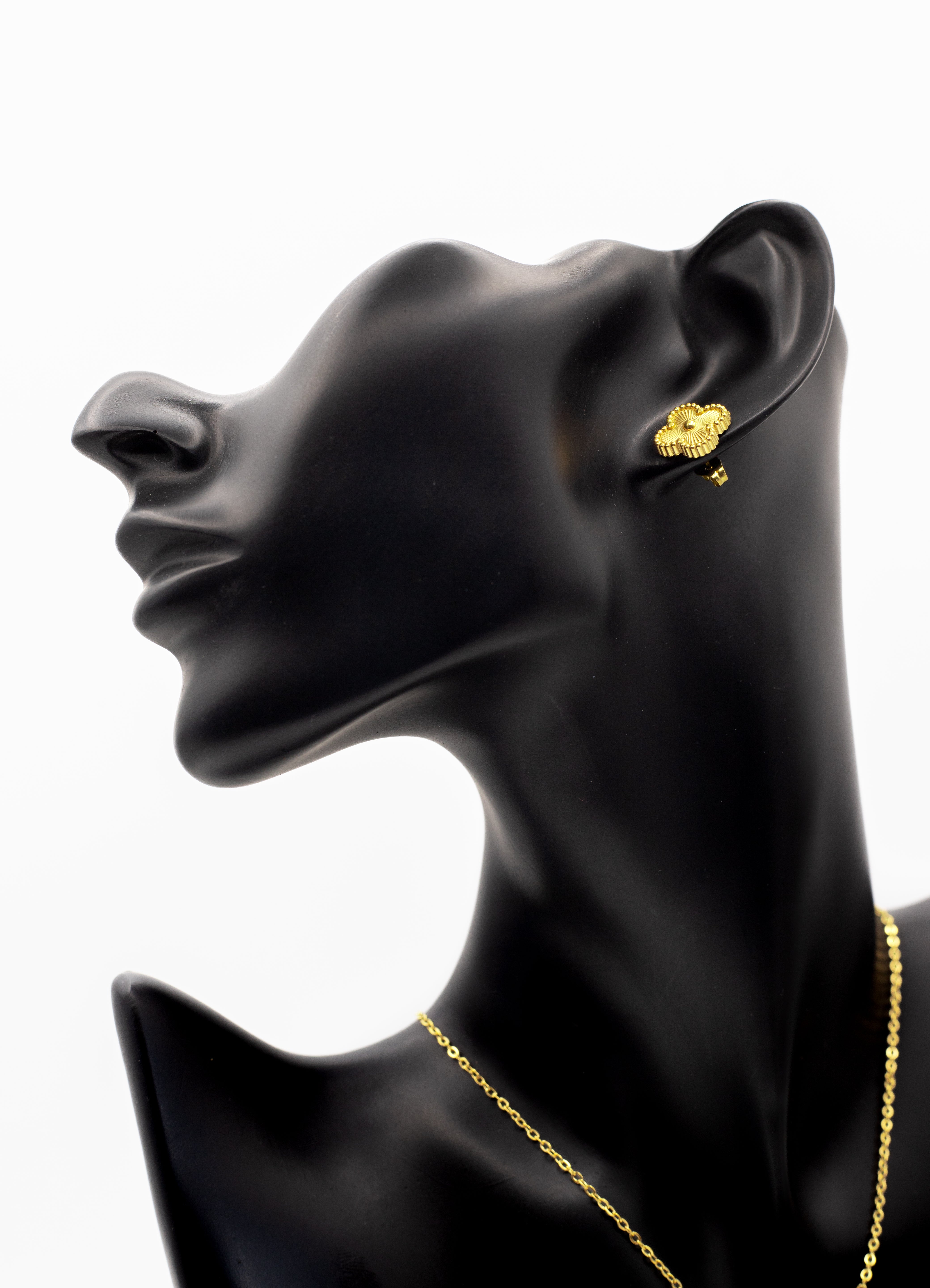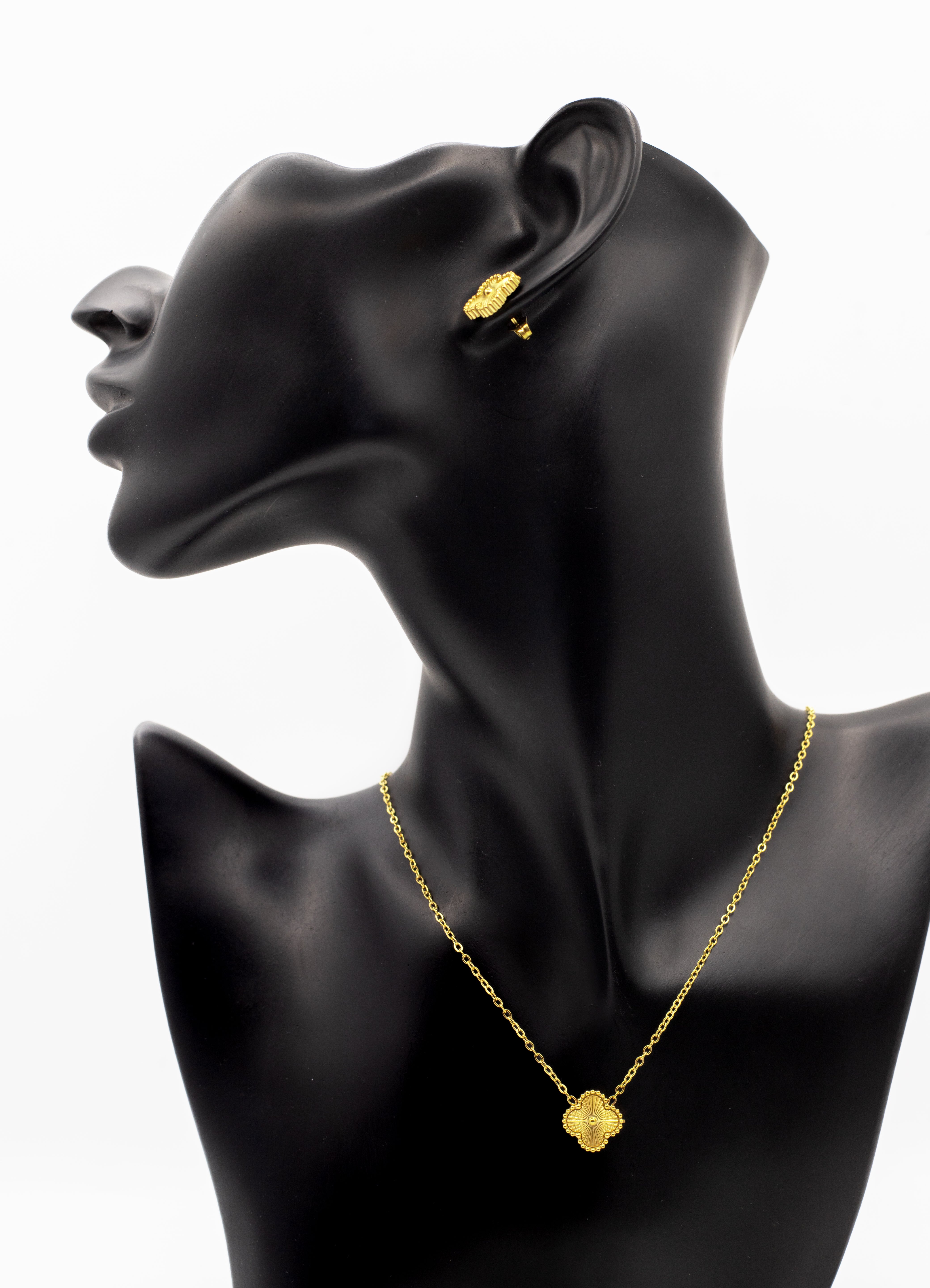 Product Description: Celebrate luck and timeless elegance with the Lucky Clover Motif Collection. This iconic design features the four-leaf clover symbol, widely cherished as a token of good fortune. Each piece is crafted in a radiant gold tone with a delicate beaded rim that frames the vibrant center stone. Choose from a stunning array of finishes to match your style.