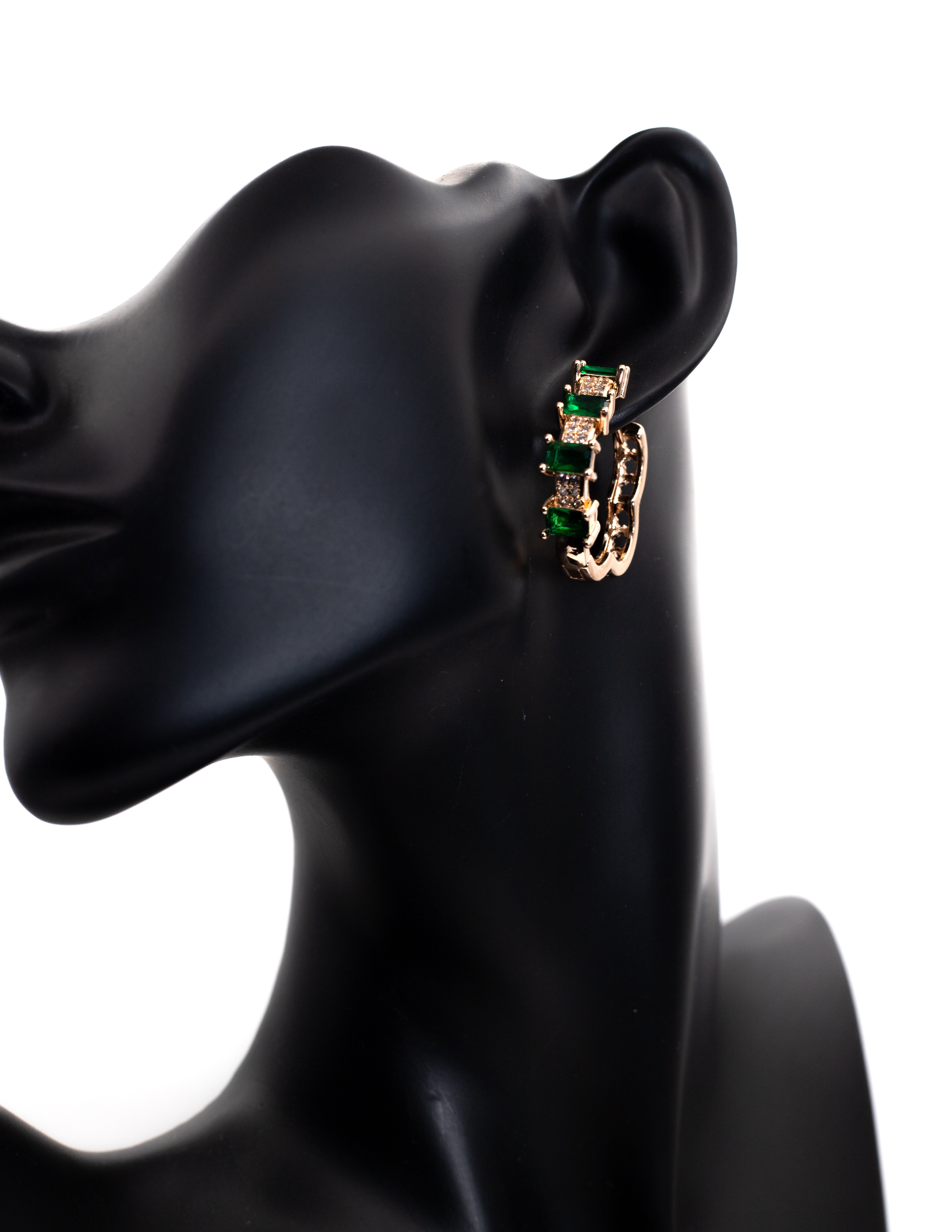 Make a statement of vibrant luxury and high contrast with our Luxury Golden Emerald Square-Cut Hoop Tops. These brilliant huggie earrings feature a striking pattern of alternating square-cut emerald green and clear crystals, set meticulously into a polished golden frame. The geometric precision and rich color palette create a dazzling, high-end effect. Perfect for adding a pop of color and premium glamour to your ensemble. They embody Korean-inspired sophistication and are ideal for evening events, festive occasions, or elevating your workwear with a touch of luxury.