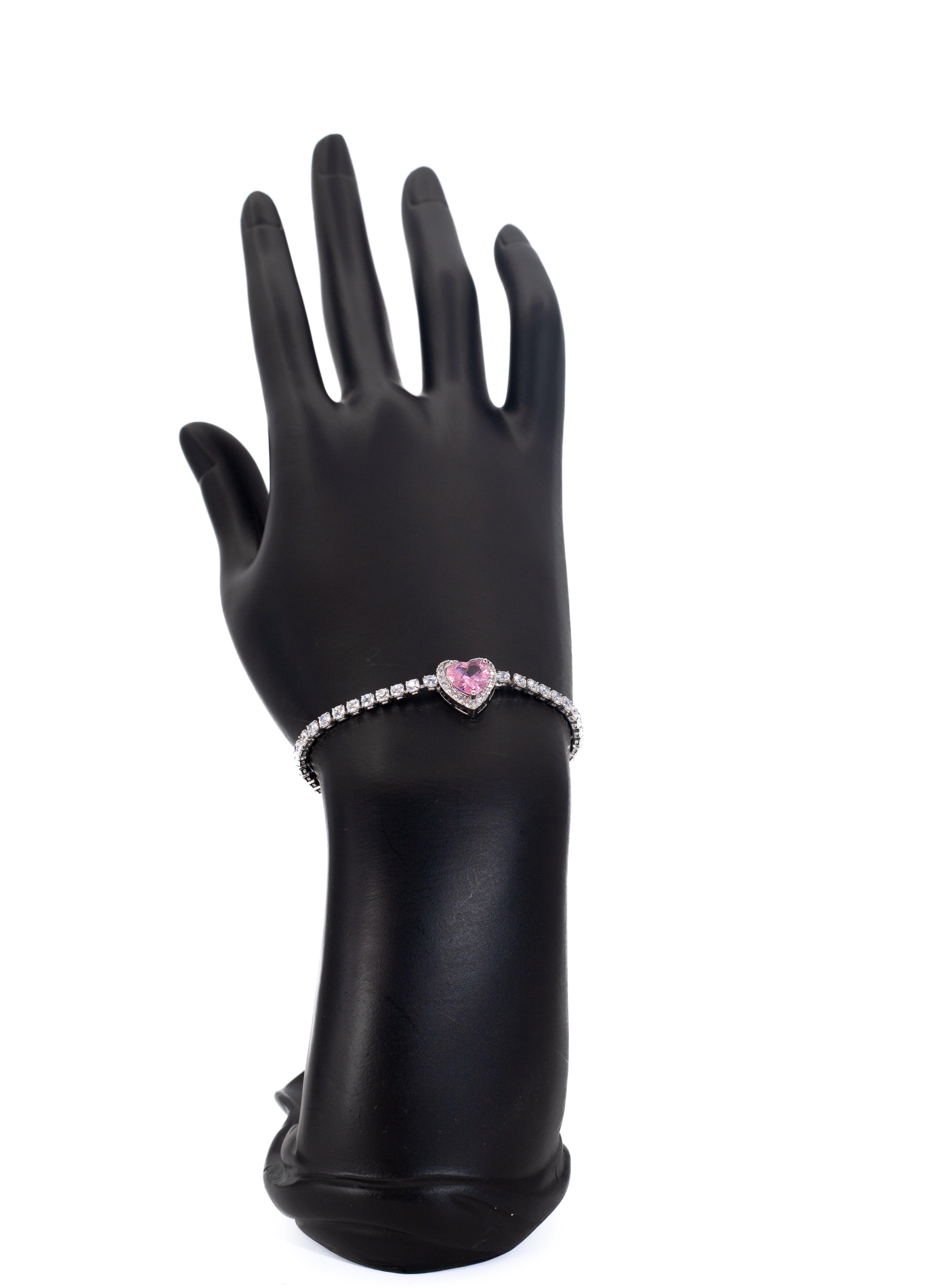 Embrace elegance with a hint of romance through our Silver Bracelet adorned with a soft pink heart pendant.